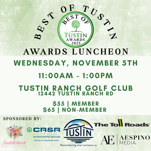 Join us for the first annual Best of Tustin Awards Luncheon, a celebration of the incredible businesses, organizations, and individuals who make Tustin such a vibrant and thriving community.