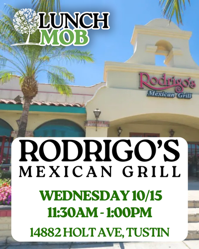 Join us for the Tustin Chamber of Commerce Lunch Mob on Wednesday, October 15th at Rodrigo’s from 11:30 AM to 1:00 PM!